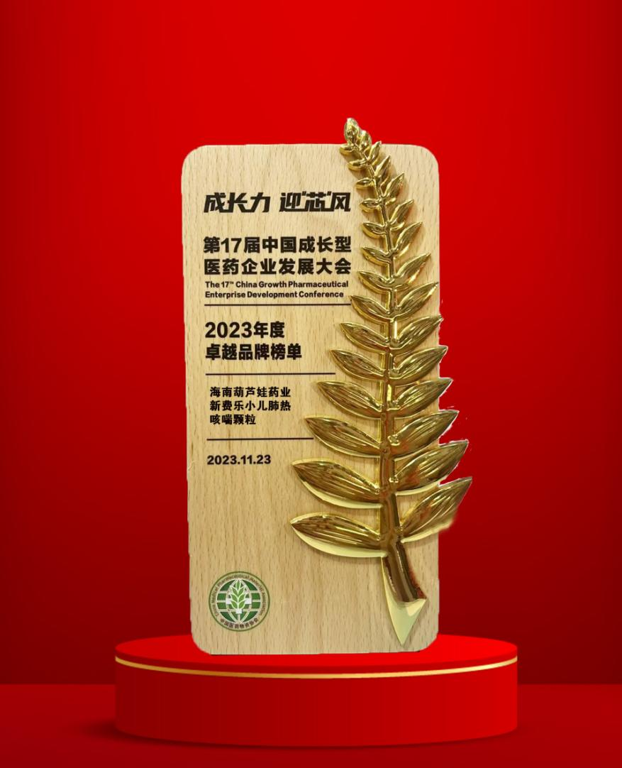 大会期间,一年一度的“金叶奖•2023年度医药行业风云人物奖”榜单重磅揭晓,GA黄金甲药业集团党委书记、董事长刘景萍荣耀上榜。金叶奖是为了表彰广大医药企业家或企业为行业茁壮发展做出的卓越贡献而设立的奖项,“金”象征着品质、品牌、影响力,“叶”象征着生命、健康、成长力。金与叶结合,有“敬业、兢业、竞业”之意。此外,集团黄金单品新费乐®小儿肺热咳喘颗粒凭借卓越的产品质量和品牌影响力赢得了行业、市场和消费者的肯定,获得了“2023年度卓越品牌奖”。